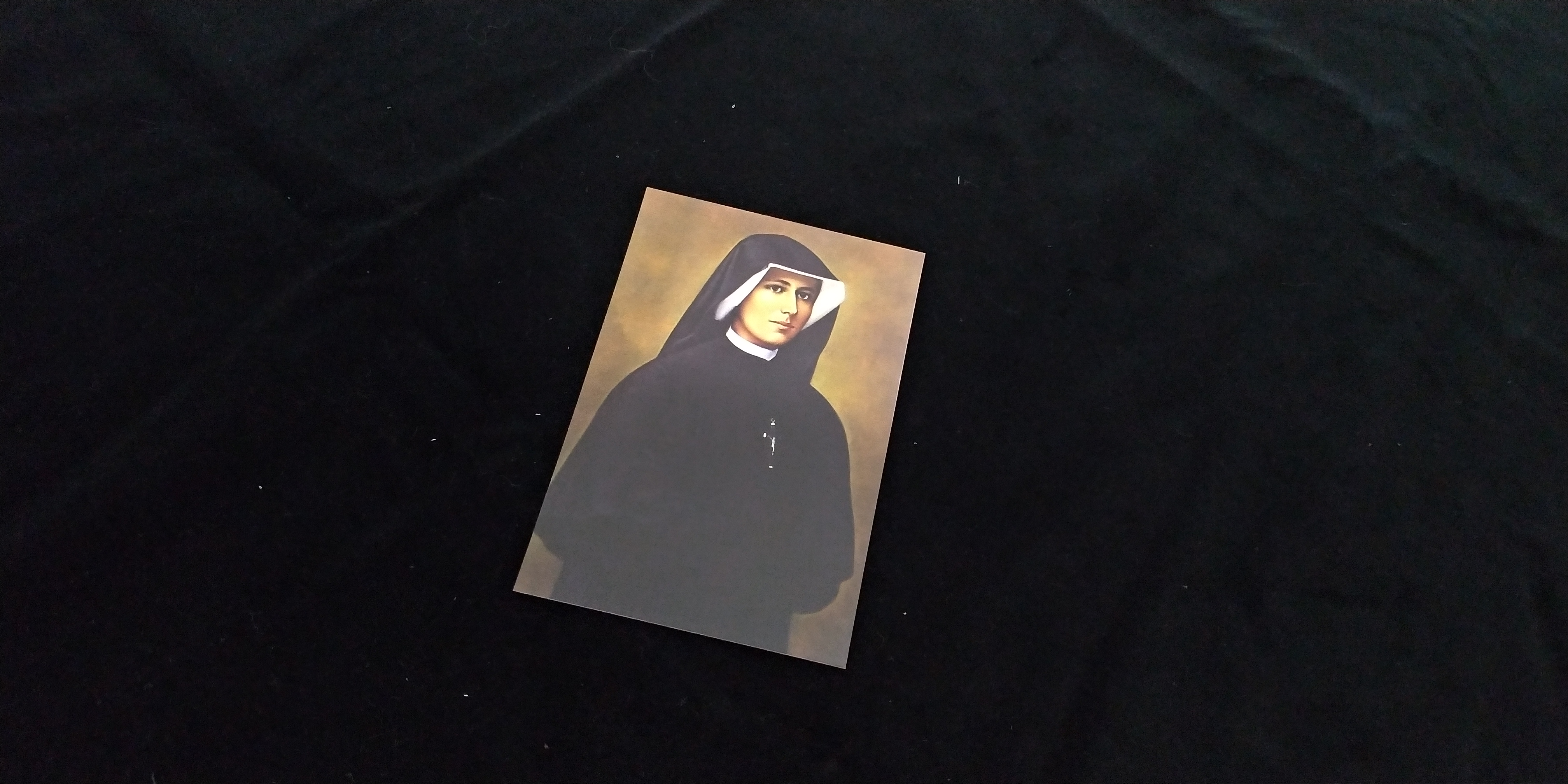 Cartolina sia figura intera sia volto di Suor Faustina o Gesù Misericordioso o Madonna di Rosa, con retro bianco o con coroncina e preghiera.